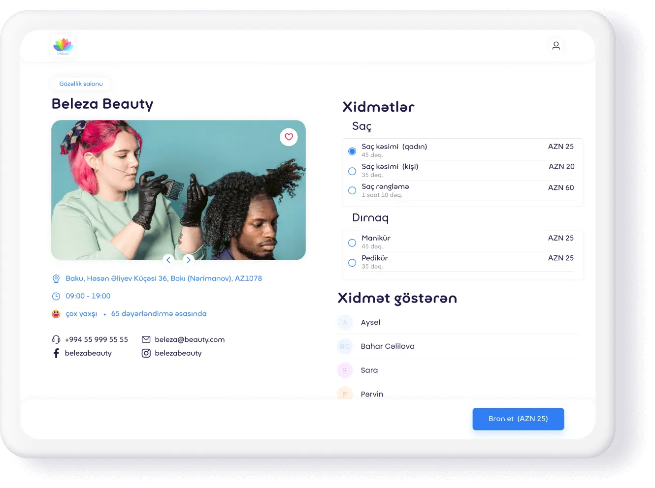 Bütün xidmət sahələri üçün asan və ağıllı onlayn bron xidməti